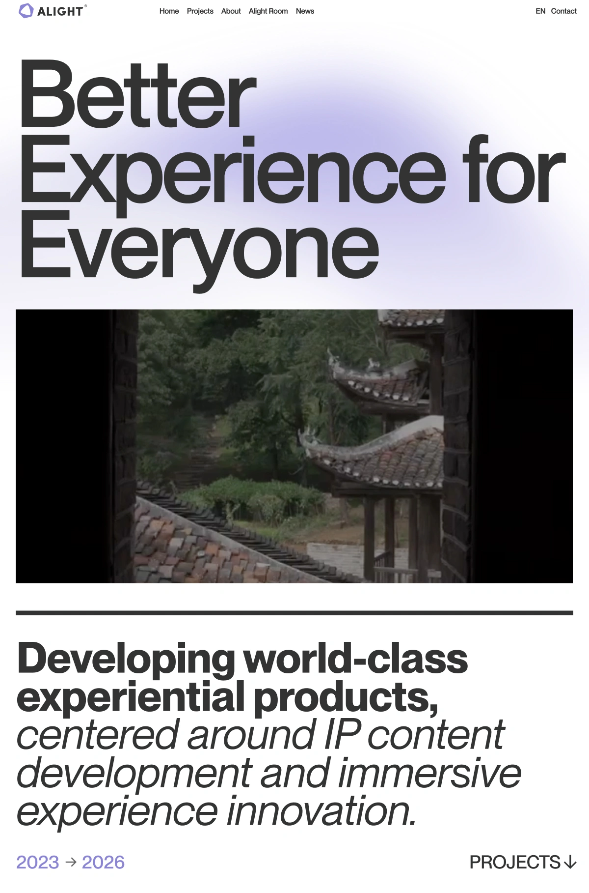 ALIGHT 是一支由数字技术驱动的全链路数字创意研发团队。它致力于将前沿技术、艺术创造力与实际应用相融合,为品牌和空间打造具有长期价值导向的数字解决方案。涵盖从创意策划到技术实施的整个链条。我们的团队能力横跨多个维度,包括创意、设计、工程和内容制作,涵盖创意策划、空间设计、视觉效果设计、交互设计、艺术装置设计、声场设计,以及算法工程、软件开发和电影制作。同时,ALIGHT 聚集了建筑师、戏剧导演、艺术家和营销运营团队,以确保创意既具有艺术高度又具备商业可行性。